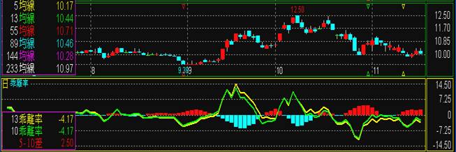 離點賣出,反之,在空頭市場時,亦會使負乖離率加大,可於前次低價之負乖離時買進。