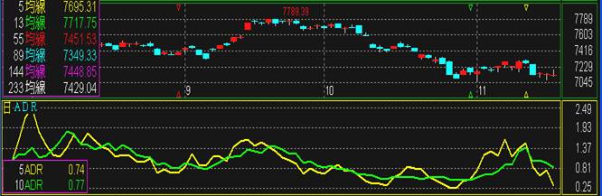 6.ADR下降至0.65之後,再回升至1.40,但無法突破1.40, 則顯示上漲的氣勢不足。