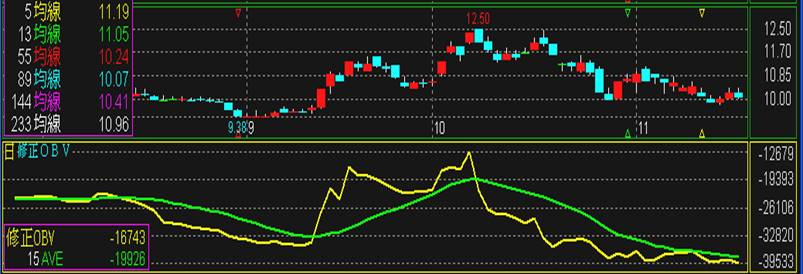 1.OBV 線下降,而股價上升時,為指標轉折向下機率高。