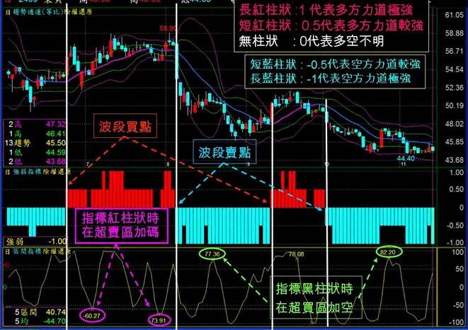 亦可做為波段操作之研判依據,並配合動能指標的超買超賣做反向加碼,