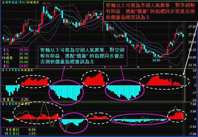 1.以0軸為多空分界。0軸以上可視為多頭人氣匯集,對多頭較有助益;