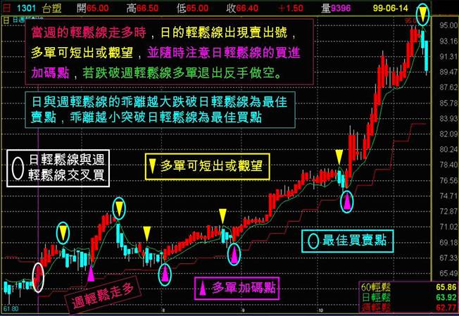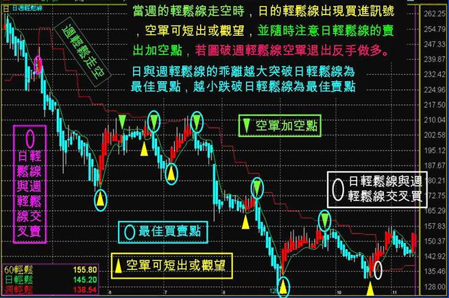 並隨時注意日輕鬆線的買進加碼點,若跌破週輕鬆線多單退出反手做空。