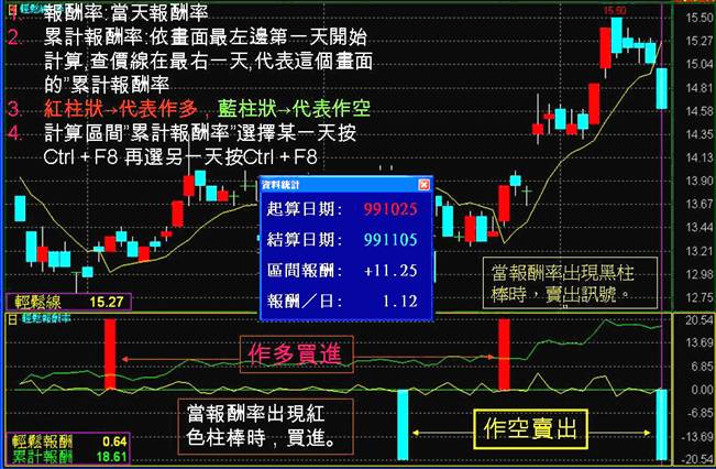2.當報酬率出現黑柱棒為賣出訊號, 融券放空者,不必急於回補,空手者勿介入作