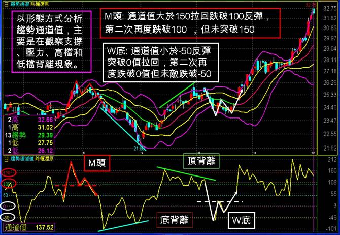 3. 以形態方式分析趨勢通道值,主要是在觀察支撐位置、壓力位置、高檔背離和低檔