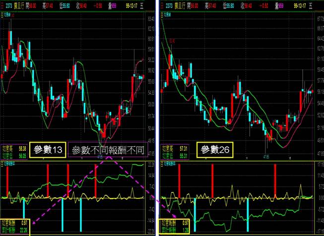 3.可依個別股票的特性,修改對應指標的參數,直到報酬率最高,為最