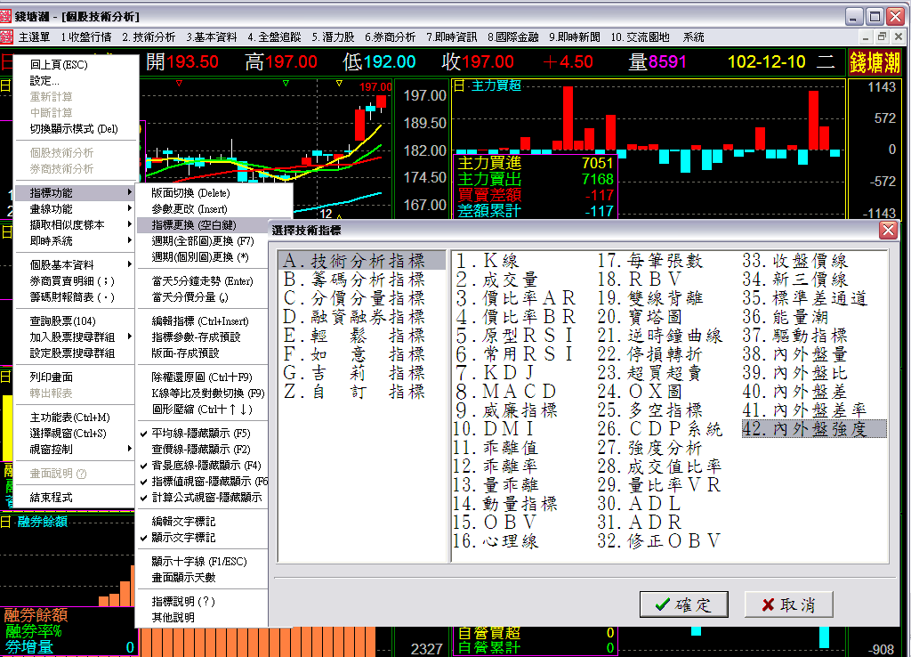錢塘潮股市分析軟體可成為您長期投資的好幫手,我們的軟體提供了上百種的各式技術指標、如錢塘潮獨創的「輕鬆指標」「如意指標」「吉莉指標」您也可自行創造新的「自訂指標」協助您精準研判市場多空趨勢。